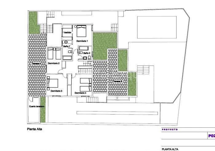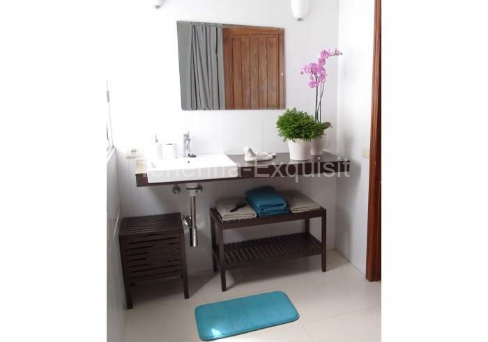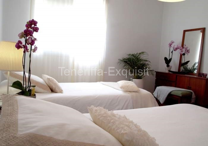 Die Schlafzimmer liegen alle im Obergeschoss und haben Zugang zu der Terrasse. Die Mastersuite ist mit einem Doppelbett (160×200) ausgestattet, ebenso wie mit einem begehbaren Kleiderschrank und eigenem Badezimmer. Das zweite Schlafzimmer hat ein spanisches Ehebett (135×190), das 3. Schlafzimmer hat 2 Einzelbetten (a 1×190) und im 4. Schlafzimmer steht ein Einzelbett.