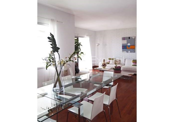 Im unteren Bereich sind die restlichen Räumlichkeiten, wie ein kleines Wohnzimmer (ca. 20m²) mit Sofalandschaft, Flatscreen und große Türen die auf die Grillterrasse führen. Ein großer Wohnsalon mit Essbereich ist ebenfalls im unteren Geschoss vorhanden. An dem Esstisch finden bis zu 8 Personen Platz.