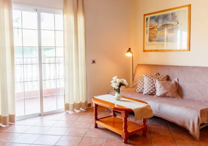 Große Fenster, stilvolle Einrichtung und der schöne möblierte Balkon mit seitlichem Meerblick machen diese Wohnung zu einem idealen Ausgangspunkt für Ihren Urlaub am Meer.