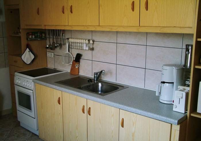 Voll ausgestattete Küche mit allen Küchen- und Essutensilien