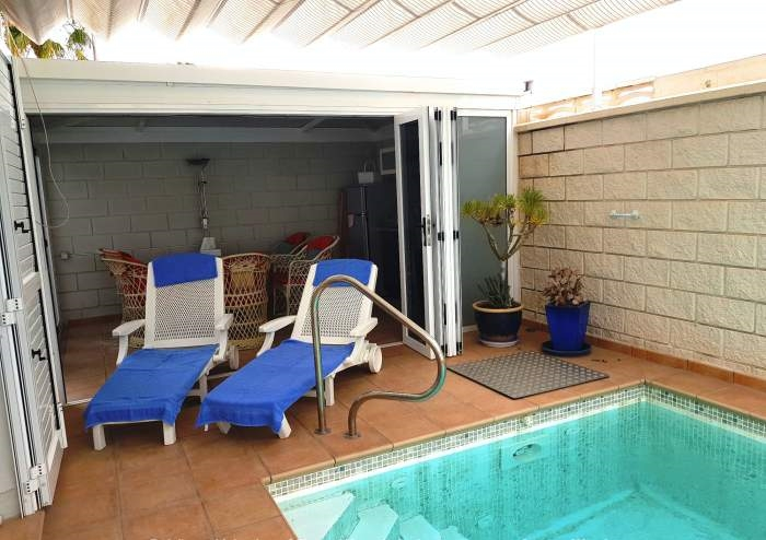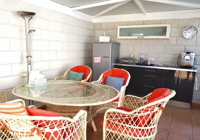 Besonders charmant ist die kleine Außenküche im Wintergarten, die zu geselligen Grillabenden einlädt. Ob frischer Fisch vom Markt oder kanarische Tapas – hier schmeckt der Urlaub doppelt so gut.