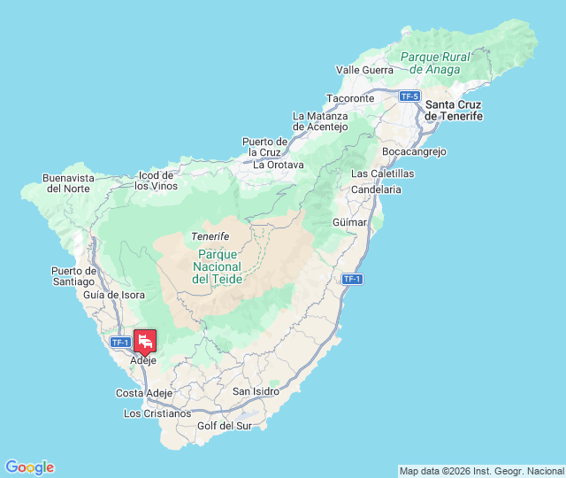 Der Flughafen Teneriffa Süd (TFS) ist ca. 20 km entfernt. Ein Mietwagen ist empfehlenswert, aber nicht zwingend notwendig.
