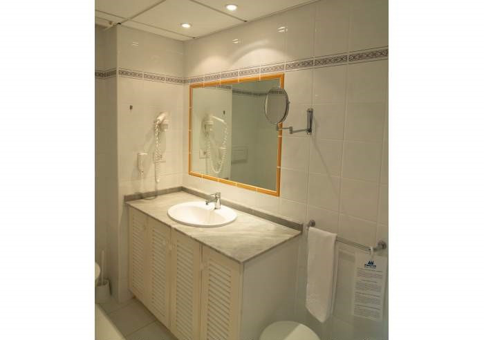 Das Badezimmer mit Badewanne, Dusche, Bidet und Kosmetikspiegel sorgt für Komfort, während die Klimaanlage mit Heizfunktion zu jeder Jahreszeit für angenehme Temperaturen sorgt.