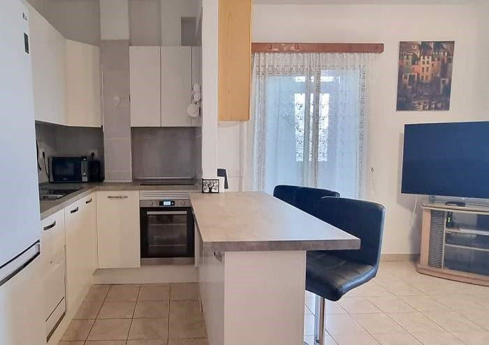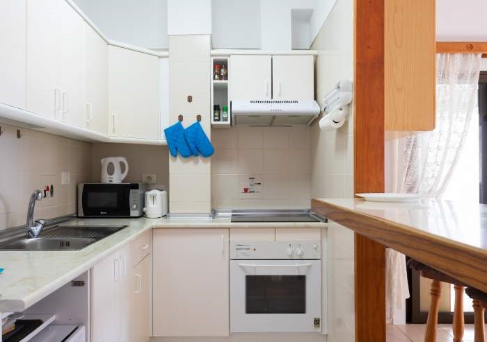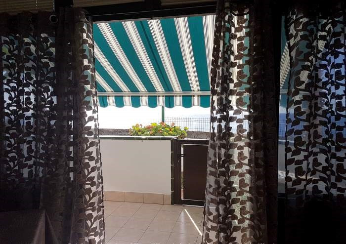Diese Ferienwohnung verfügt über ein Wohn-/Esszimmer mit Schlafcouch und SAT-TV, 2 Schlafzimmer mit Doppelbetten, eine voll ausgestattete Küche und ein Bad mit Dusche / Badewanne und Waschmaschine. Die Küche bietet einen 4-Platten Ceranherd, Ofen, Kühlschrank und eine Kaffeemaschine. Weiter verfügt die Ferienwohnung über 2 möblierte Balkone, wovon einer mit tollem Meerblick ist.