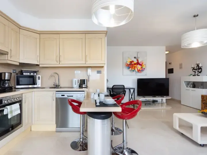 Die lichtdurchflutete Unterkunft besticht durch moderne Ausstattung, großzügige Terrassenflächen und den Blick auf das Meer – ein echtes Juwel für Erholungssuchende und Sonnenliebhaber.