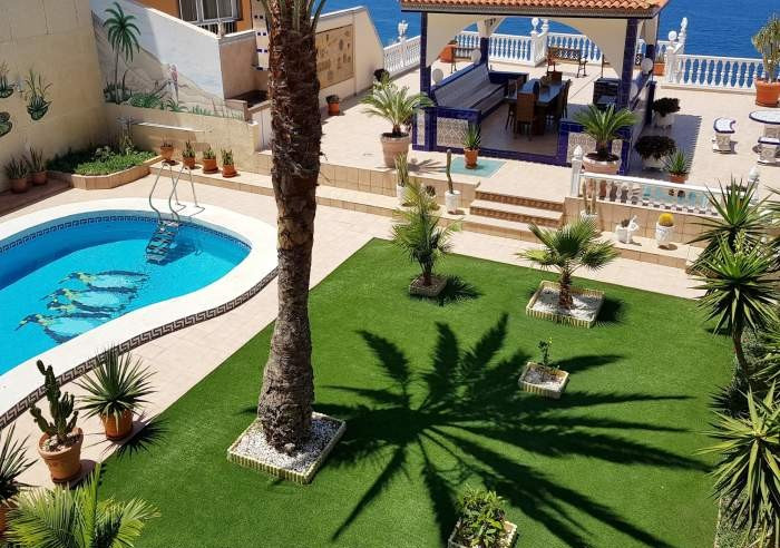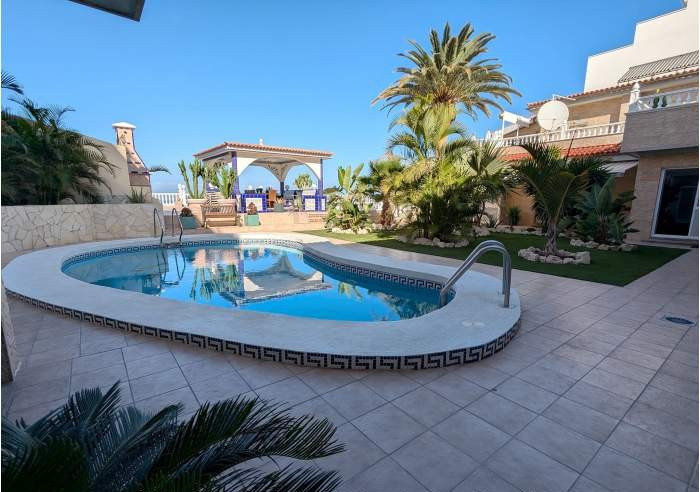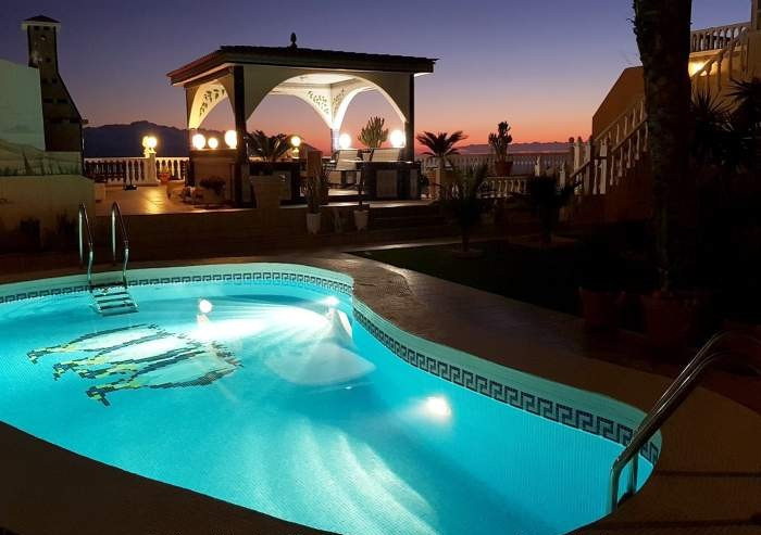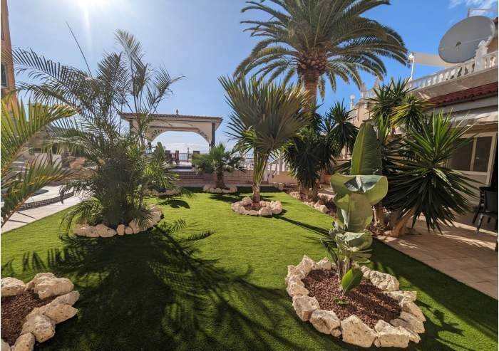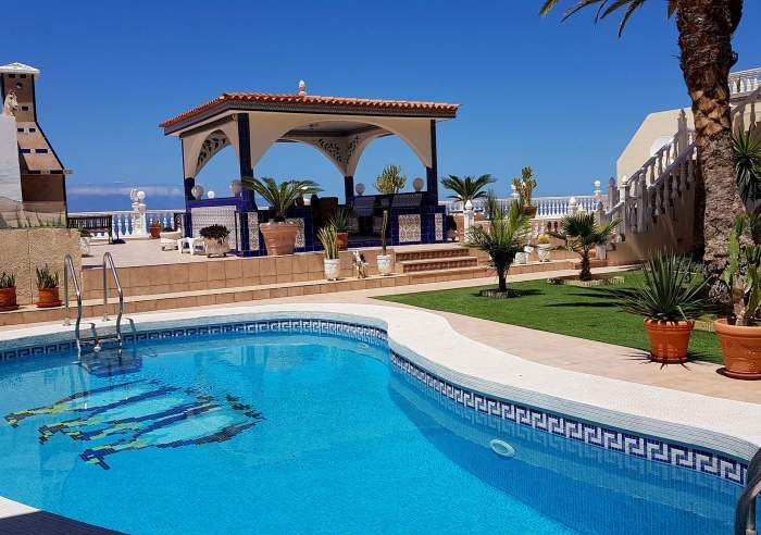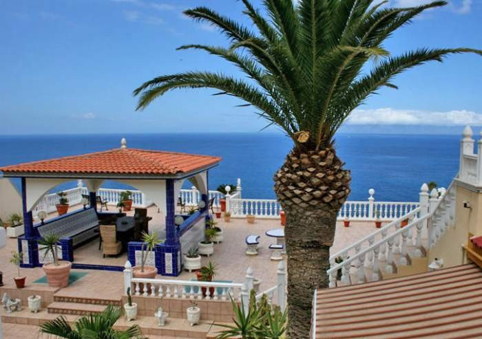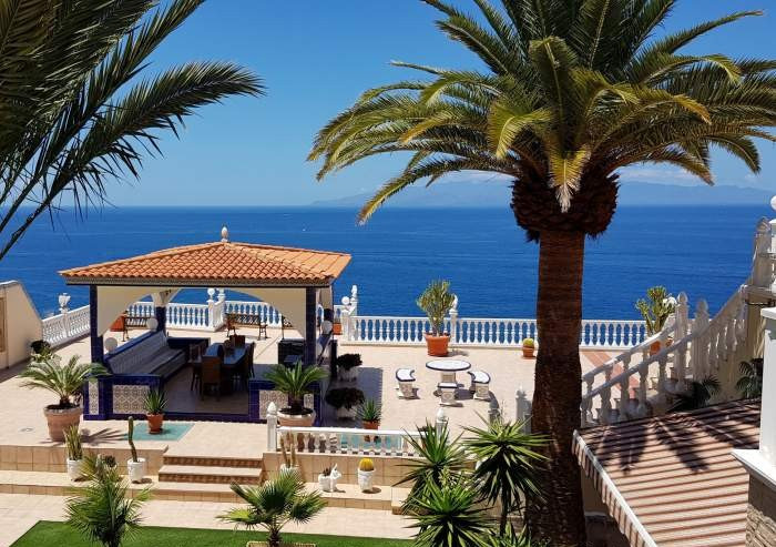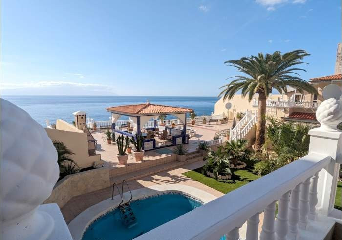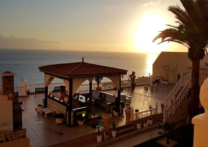 Ein besonderer Ort ist die gemeinsame Aussichtsterrasse mit andalusischem Pavillon, bequemen Sitzmöbeln, Sonnenliegen und einem fantastischen Blick über die Küste – bis hin zu den Klippen von Los Gigantes und zur Nachbarinsel La Gomera. Hier erleben Sie atemberaubende Sonnenuntergänge, während die Wellen sanft am Ufer rauschen.